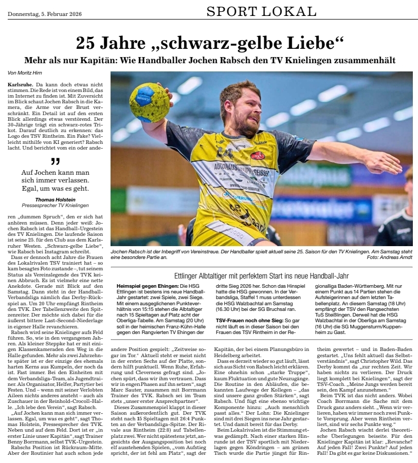 Jochen Rabsch in der Inbegriff von Vereinstreue. Der Handball spielt aktuell seine 25. Saison für den TV Knielingen. Am Samstag steht eine besondere Partie an.